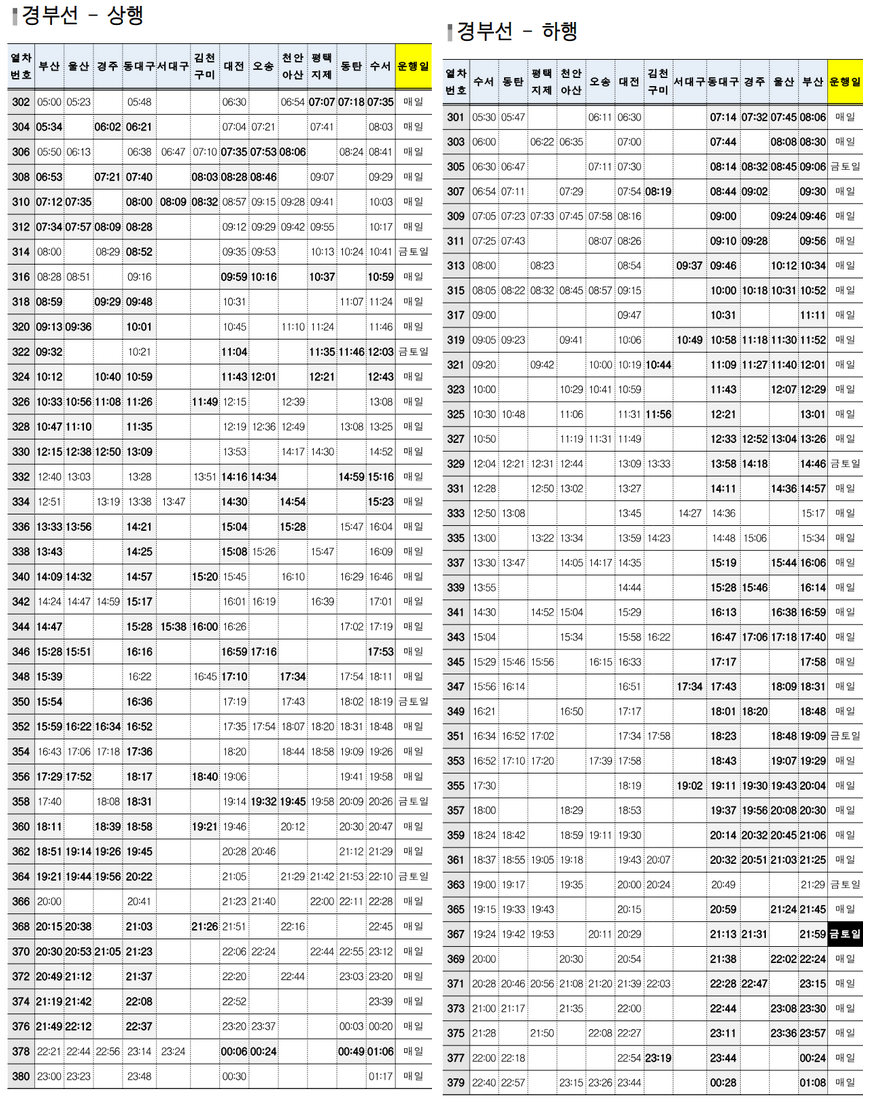 SRT 시간표는 수시로 변경될 수 있기 때문에 SRT 공식 홈페이지 또는 SRT 앱에서 실시간 확인이 가장 정확합니다.