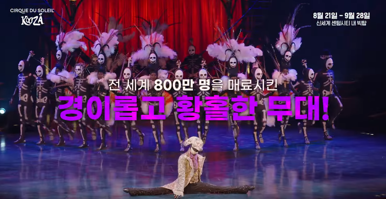 전 세계 1,000만 관객을 사로잡은 태양의 서커스가 돌아왔습니다! 이번에는 ‘쿠자(KOOZA)’라는 작품으로, 한국 관객들을 다시 한 번 놀라운 무대 예술로 매료시킬 준비를 마쳤습니다. 화려한 서커스와 환상적인 무대의 조화! 이번 기회, 놓치지 마세요 💜